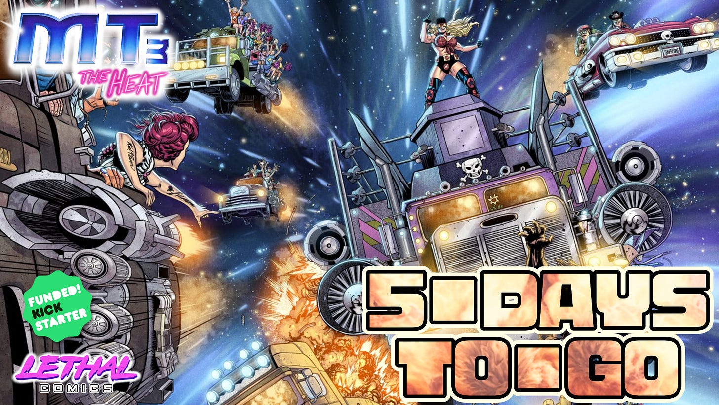 5 DAYS TO GO! MOTHER TRUCKER IS BACK in MT3 The HEAT 40 pages of hardcore space wrestling action in a comic, 2 four page back ups, each issue is coming stacked with a 12 card set, CENTERFOLD posters, stickers, patches and if we hit 30k a new 40 page art book! Tell your pals to jump in the ring with MOTHER TRUCKER 3 THE HEAT!